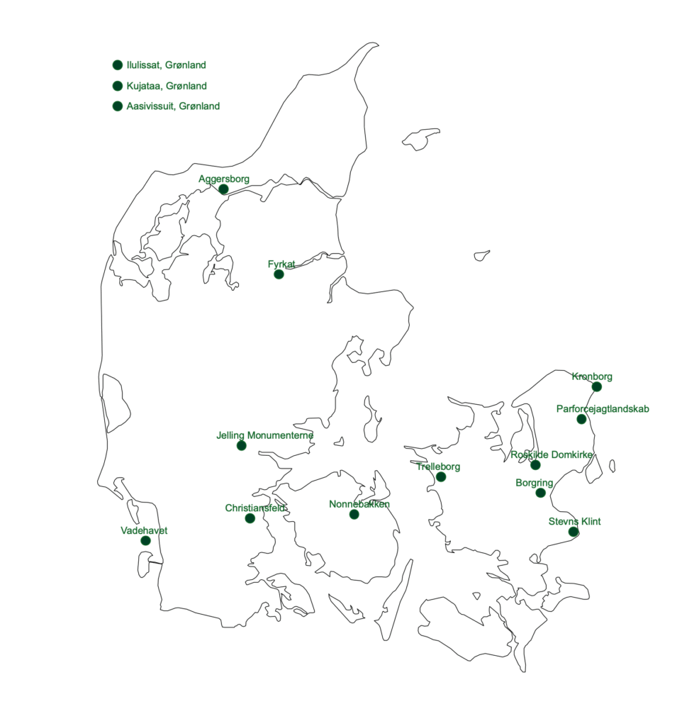 Bemærk venligst, at Borgring, Trelleborg, Nonnebakken, Fyrkat og Aggersborg er blevet indskrevet under ‘Vikingetidens Ringborge’.